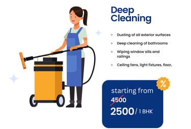 HRHK Services offers deep cleaning including full flat cleaning, floor cleaning, kitchen and bathroom deep cleaning, dust removal, surface sanitization, and complete space hygiene for a fresh, spotless home or office.